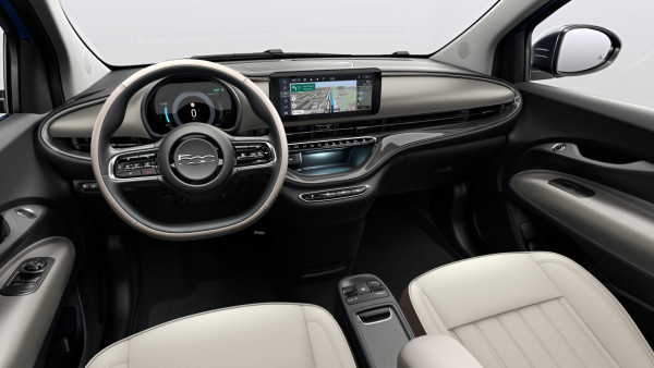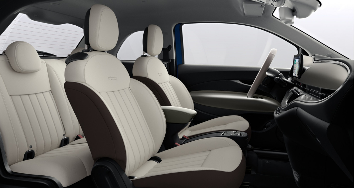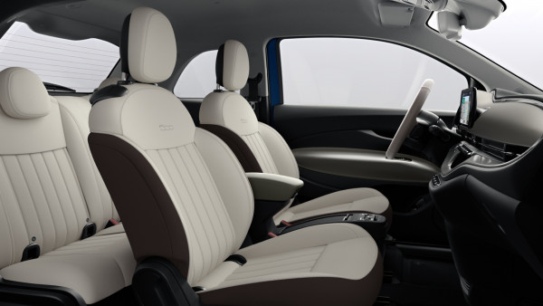 * UPGRADE LA PRIMA / ПАКЕТ LA PRIMA: 17" алуминиеви джанти Diamond Cut с гуми 205/45 R17 (404); Волан, облицован с двуцветна еко кожа и вградено управление на аудиофункциите (6BN); Тапицерия от еко кожа с монограм FIAT (211); LED фарове (5EM); Система за автоматично превключване между къси и дълги светлини (1H2); Електрохроматично вътрешно огледало за обратно виждане (410); Предни и задни стелки с лого 500 (396); Хромирани елементи на рамките на прозорците (5IG); Лайстни на праговете на вратите (018); Затъмнени задни стъкла (070); Хромирани странични лайстни (4MQ); Табела LA PRIMA (MWX); Централна конзола с отделение за вещи със затваряне (467); Безключово отваряне на шофьорската врата и стартиране (9Z0); Електрическо управление с едно докосване на всички стъкла (038); Автономно шофиране ниво 2 (9YZ)