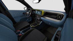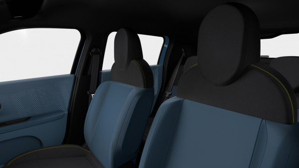 * Текстилна тапицерия BASE в синьо и черно с жълти шевове
