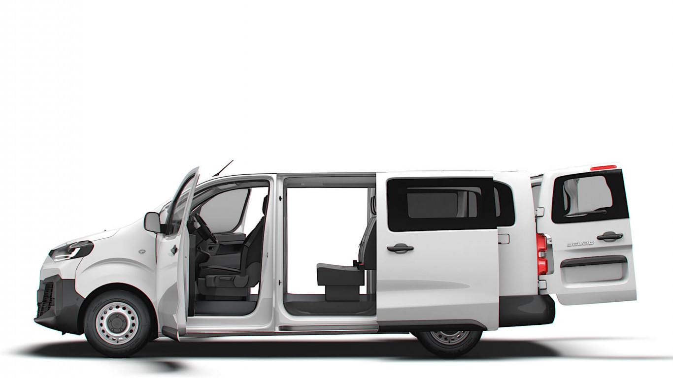 * Салон с 9 местна конфигурация - двуместна пътническа седалка до водача на ред 1, триместни седалки на ред 2 и 3 ( делими 2/3 към 1/3)